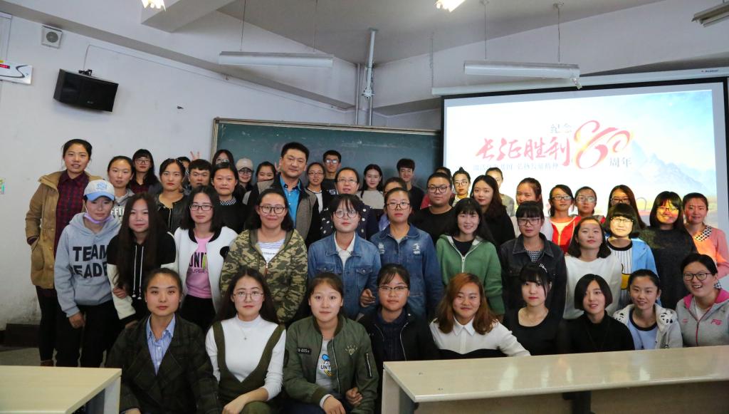 10月21日下午,为纪念中国红军长征胜利80年,教育科学学院15级学前一班团支部开展以“不忘初心,走好新的长征路”为主题的团日活动,特邀请校团委“驻校蹲班”指导老师刘国庆老师以及教育科学学院团总支书记方丽慧老师深入活动现场观摩指导。活动开始后,同学们用饱满的热情,通过舞蹈、歌曲、朗诵,相声、小品等形式,讴歌伟大的长征精神,表达了对中国共产党人和人民军队的敬佩之情以及响应以习近平总书记的对青年的期望和号召,永远跟党走,“不忘初心,走好新的长征路!”的坚定信念和决心。 (教育科学学院)