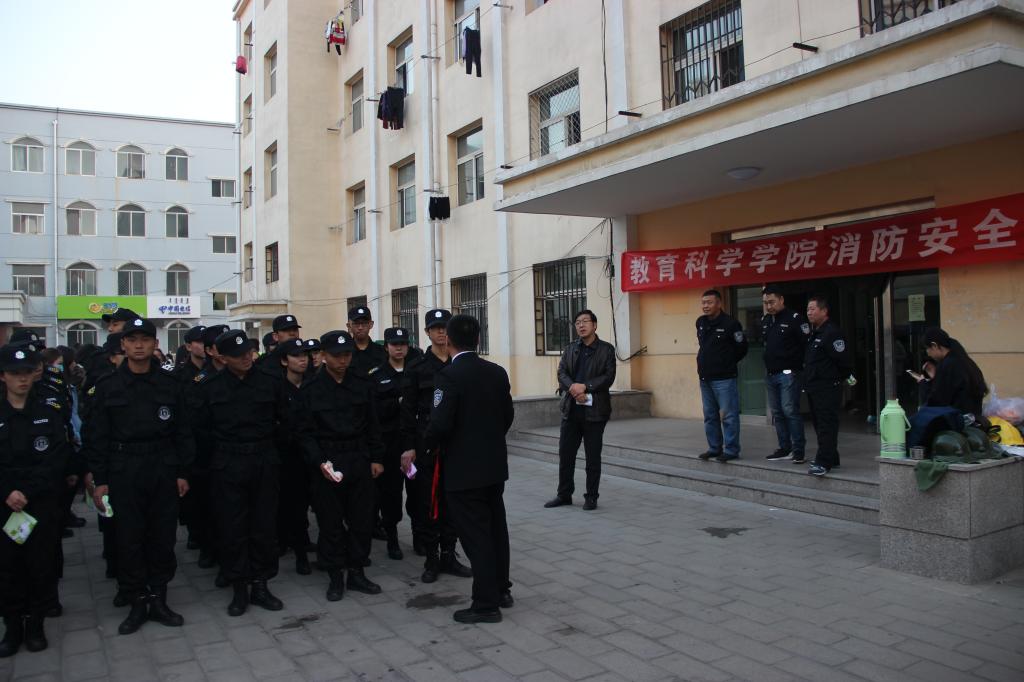 活动特别邀请到了内蒙古法学会消防法制研究中心的消防宣传教官部部长、中心一级教官郭栋作为此次演习指导员。演练开始前,他为14号公寓楼全体学生讲解了消防的基本知识和消防疏散演练中的有关注意事项,教育科学学院党总支书记张岫峰强调了有关要求。之后按照消防演练方案预定的程序和分工,有序安全地组织了整栋楼的消防疏散演练活动。在整个讲座和演练活动中,为确保演习安全有序进行,郭栋教官、保卫处消防科科长杨志斌和教育科学学院党总支书记张岫峰全程在现场指导学生安全疏散并深入宿舍区域内进行监督检查。教育科学学院、学校消防科和公寓管理中心的部分工作人员以及我校学生校园综治联盟部分学生参与协助组织,有近700余名学生参加了疏散演练活动。此次活动进一步提高了学生的消防安全防范意识,使学生掌握了消防基本知识,体验并学会了逃生基本技能,树立了以“安全”为主的自我保护意识,受到了广大师生的一致好评。