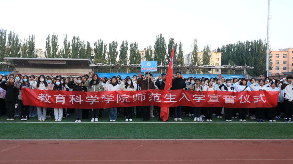 百年大计,教育为本。教育大计,教师为本。为加强师德师风建设,增强师范生对教师职业的责任感与使命感,勉励师范生热爱教育事业,2023年10月16日,教育科学学院在学校田径运动场举行师范生入学宣誓仪式,学院领导班子成员、辅导员、任课教师代表、班主任、2022级、2023级全体本科生和研究生参加了本次活动。活动由党总支副书记李志强主持。