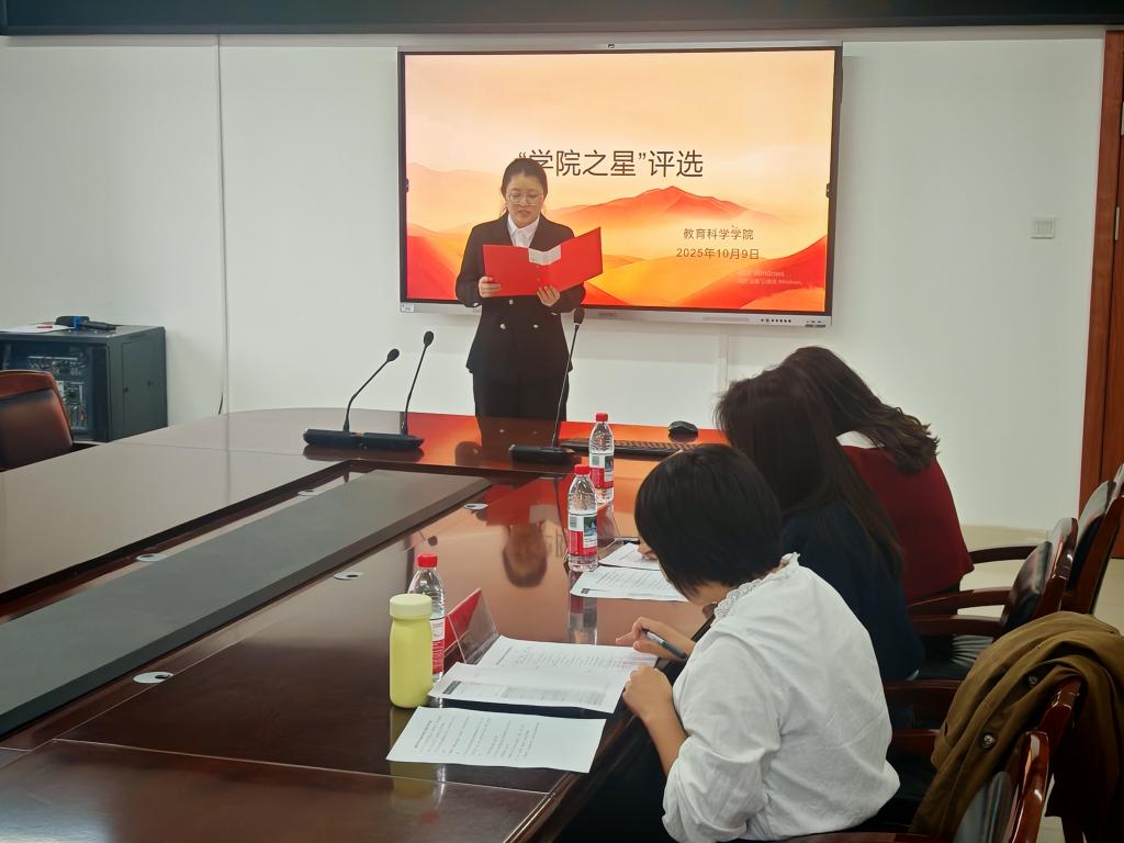 “学院之星”评选工作是教育科学学院学生管理工作的特色之一,也是奖学金评选工作的重要的环节。教育科学学院于2025年10月10日下午在实训楼1313教室举行“学院之星”评选活动。评委由王璐然、李跃华、何美娜三位老师担任。