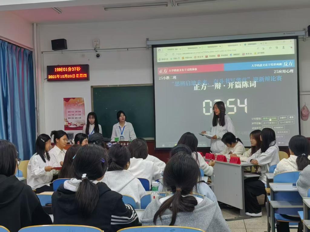 为了提升25级新生思辨能力与创造能力,展现当代大学生的青春风采与蓬勃的精神面貌,教育科学学院于10月12日在博东311、博东312举办“思辨启迪未来,奋斗书写华章”迎新辩论赛。