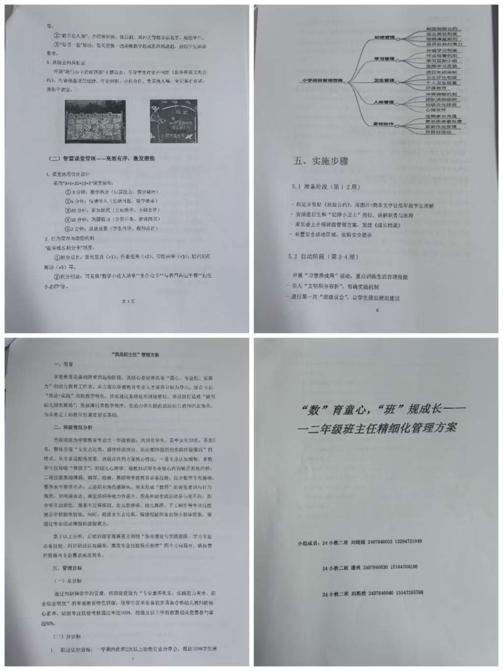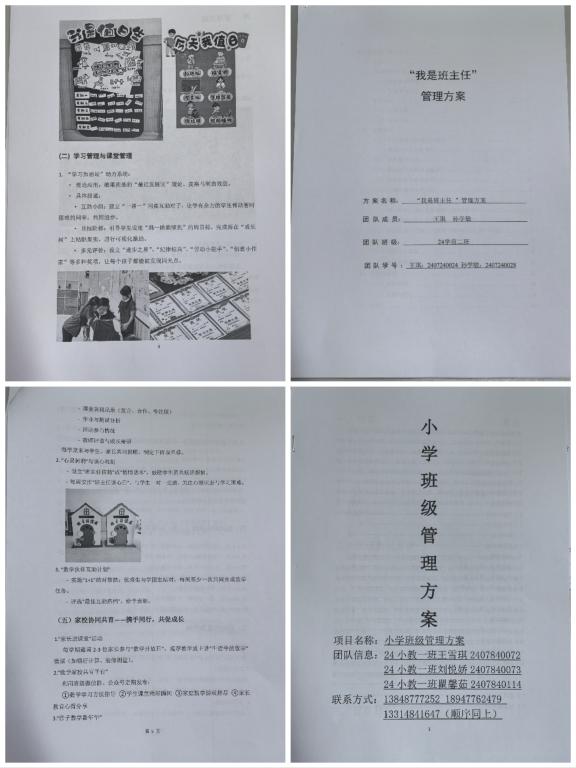 本次活动采用团队参赛模式,各团队成员全程密切沟通、高效协作,充分展现了新时代师范生的敏捷思维、教育实践创造力,以及对教师职业的前瞻认知与责任担当。参赛团队紧扣活动主题,将课堂所学教育理论转化为具象化管理策略,结合小学教育、学前教育、应用心理的实际教学场景需求,聚焦班主任核心工作维度设计方案,具体涵盖了班级常规管理、学生成长引导、班级文化建设等。围绕课堂纪律维护、值日生制度搭建、作息与行为规范养成等内容,制定日常管理流程与激励约束机制;针对不同年龄段学生的心理发展特点,设计品德教育、心理健康疏导、人际交往指导等专项方案,兼顾个体差异与群体发展;结合学段特色设计班级口号、班风班训,规划主题班会、文化活动、班级阵地布置等内容;针对校园欺凌、学生冲突、突发安全事件等场景,制定应急响应流程与科学处置策略。同学们的方案设计既贴合教育教学实际需求,又展现了师范生对班主任工作的深度思考,有效达成了本次大赛检验理论应用能力、锤炼教育实践本领的初衷。