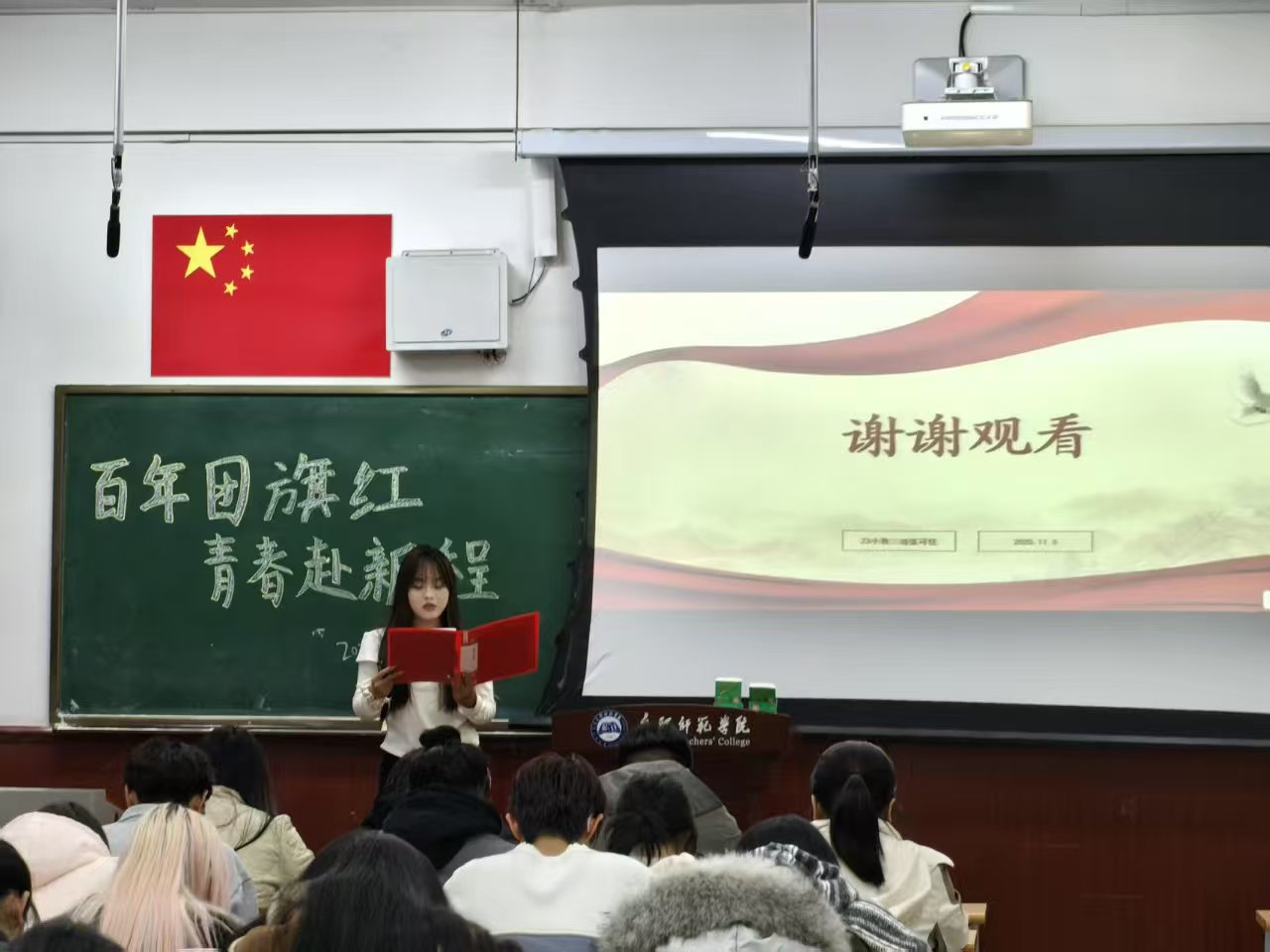 为了回顾共青团百年奋斗历程,引导广大青年坚定理想信念、增强组织归属感与认同感,从历史经验中汲取精神滋养,筑牢理想信念的根基,激发新时代青年的责任担当与使命意识,教育科学学院于2025年11月6日19:00在博西101举办“百年团旗红,青春赴新程”主题演讲活动。