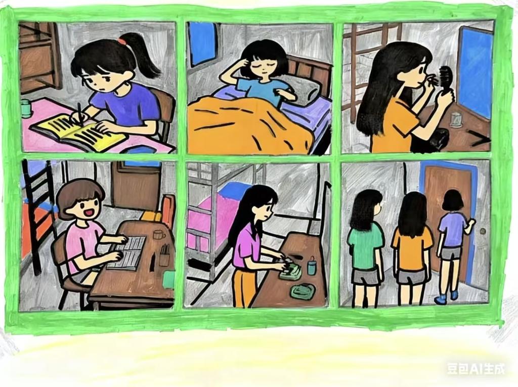 为捕捉宿舍生活的温馨片段、展现青春活力,增强宿舍集体凝聚力与归属感,传递积极向上的舍风,教育科学学院特于2025年11月23日至11月28日举办“宿说青春,画映时光”六格画作品征集活动。