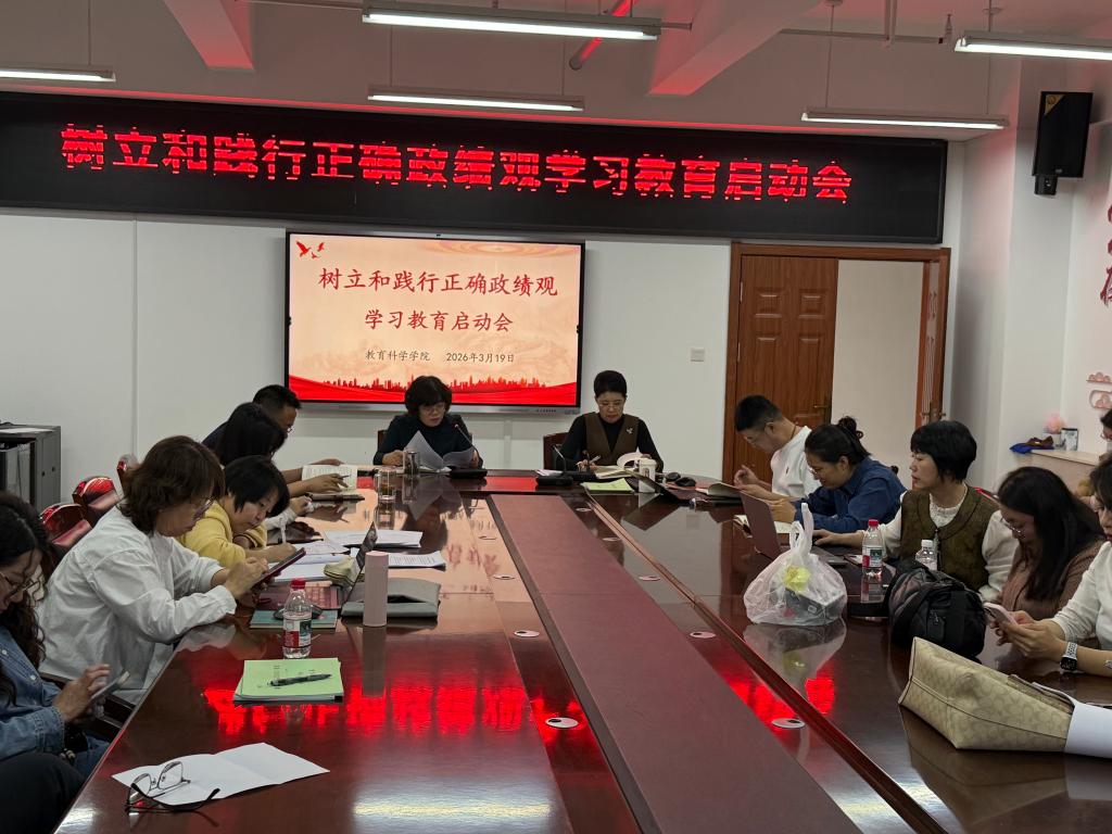 2026年3月19日,教育科学学院党总支召开树立和践行正确政绩观学习教育启动会,深入学习领会习近平总书记关于树立和践行正确政绩观的重要讲话和重要指示精神,传达学习中央、自治区、包头市和学校党委有关工作部署要求,启动部署学习教育。党总支书记李燕主持,全体教职工参加会议。