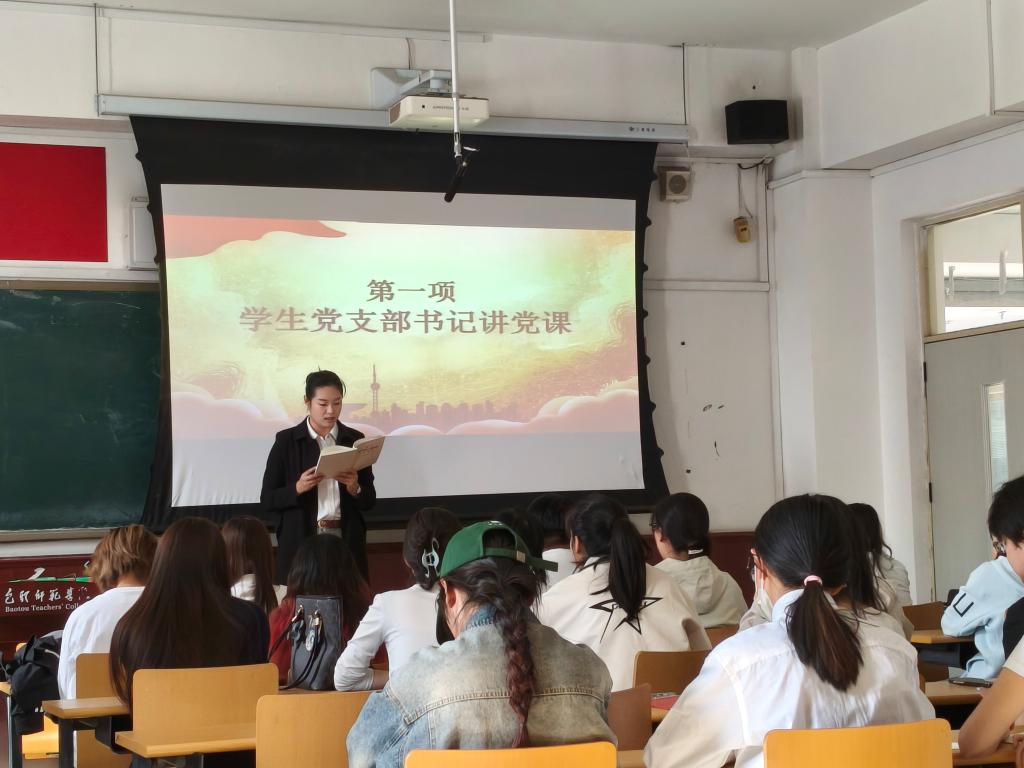 第一项,党支部书记梅雅娟围绕“政绩观问题是一个根本性问题”“第一议题”讲党课,读原文,带领党员重温了“牢记全心全意为人民服务的根本宗旨,始终保持同人民群众的血肉联系”的要求,她说要“多做打基础、利长远的事,不搞脱离实际的盲目攀比,不搞劳民伤财的形象工程、政绩工程,坚决反对形式主义和官僚主义”,并引导大家将“坚持真理、坚持原则、真抓实干、勇于担当,真正做到对历史和人民负责”落实到具体行动中。