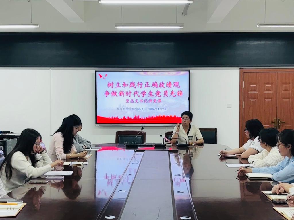 为深入推进树立和践行正确政绩观学习教育走深走实,切实强化学生党员党性修养,引导青年学子扣好人生“第一粒扣子”,2026年4月9日,教育科学学院开展党总支书记讲党课活动。党总支书记李燕以“树立和践行正确政绩观,争做新时代学生党员先锋”为题,为全体学生党员讲授专题党课。