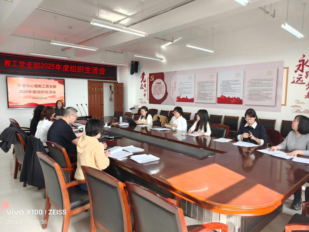 2026年3月19日,教育科学学院学前与心理教工党支部召开2025年度组织生活会。会议由党支部书记陆畅主持,全体党员参加。