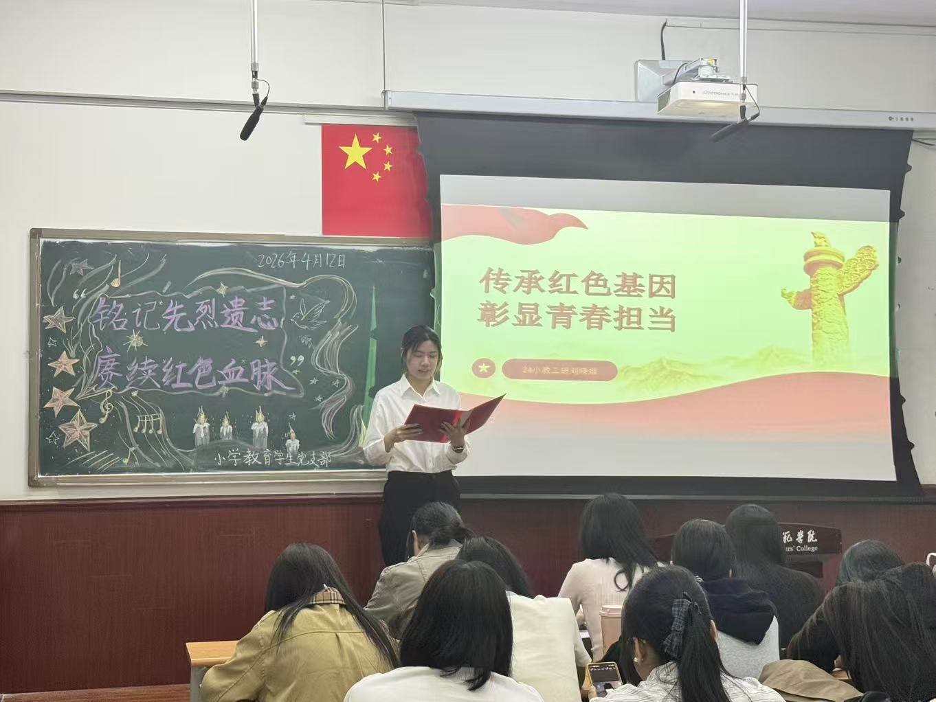 为缅怀革命先烈,传承红色基因,弘扬爱国主义精神,引导青年学子重温峥嵘岁月、感悟崇高品格,厚植家国情怀、勇担时代使命,教育科学学院于2026年4月7日至4月14日举办了“铭记先烈遗志,赓续红色血脉”主题演讲比赛。