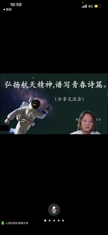 学生会办公室于4月20日举办了“弘扬航天精神,谱写青春诗篇”分享交流会活动,该活动在腾讯会议上举行,辅导员王璐然及三名学生干部担任活动评委。活动共有21位参赛选手,活动要求同学们对于神舟十三号载人飞行任务取得圆满成功进行分享交流,有的同学在分享交流过程中展示了搜集的有关航天员在太空生活的资料,例如航天员们在太空如何洗头发和理发等;有的同学针对神十三航天员们在太空的艰苦训练进行了深刻阐述,航天员们即使身边有紧急按钮随时可以按下去,但是在训练过程中没有一位航天员选择去按按钮,充分表现了航天员们艰苦奋斗的宝贵精神;有的同学讲述了“摘星星的妈妈”王亚平给女儿“摘星星”的故事;有的同学分享了自己制作的三位航天员的手账画像;还有的同学们制作了PPT,内容包含了航天知识,以图文结合的形式更清晰的展现了航天员们的训练强度,表达了对航天英雄的敬佩之情。